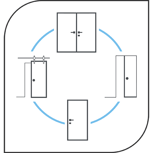 Different door configurations provide options for different use scenarios. Like, for example, bi-fold and bypass configuration for closet doors. Or you can choose a barn door to install in your living room. The possibilities are endless.